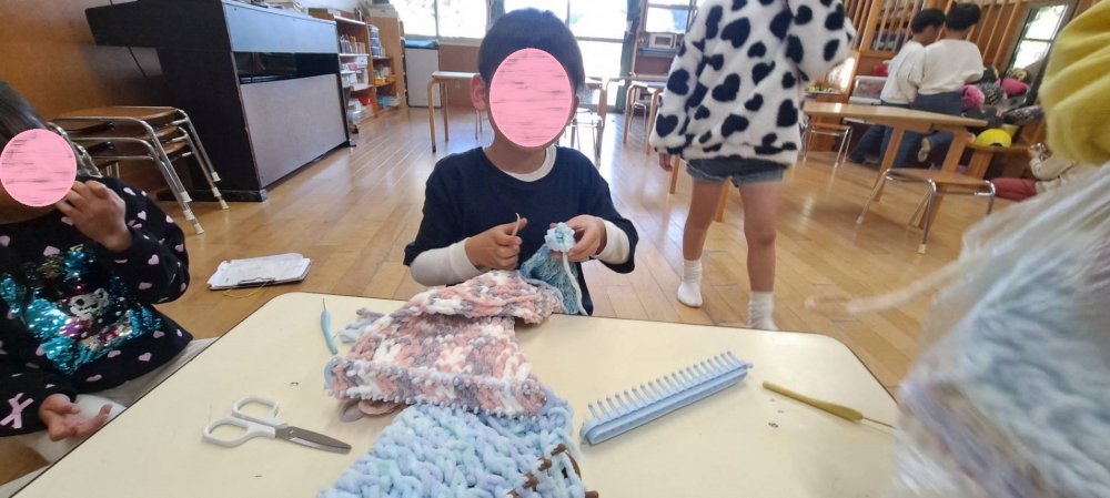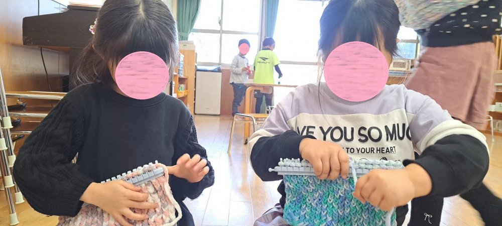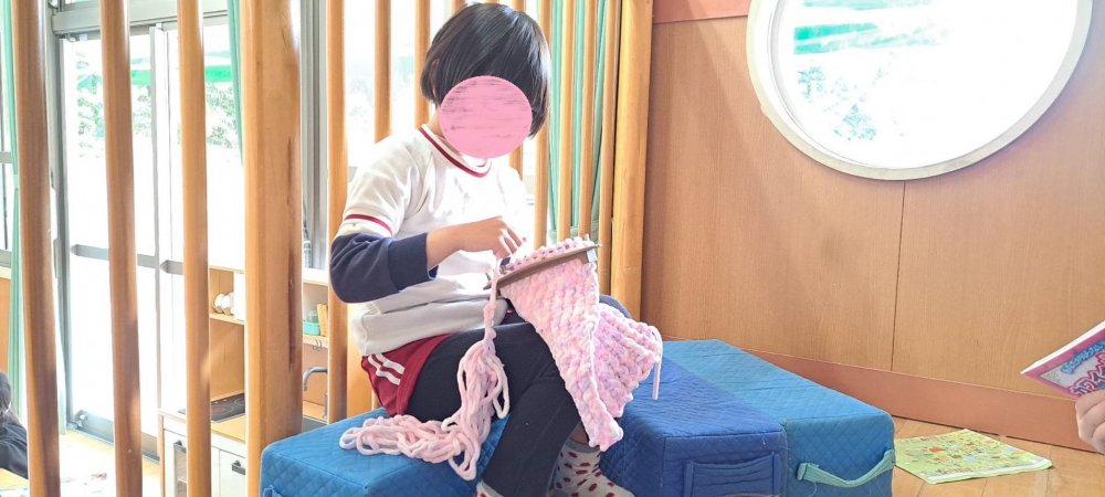 年長のスミレ組で編み物がブームになっています🎵