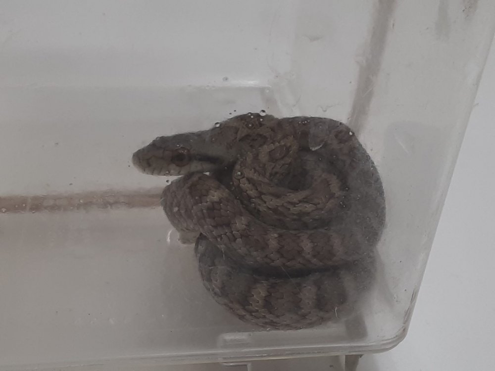 ※Instagramにて、画像のヘビがマムシではないかと心配するご指摘を受けましたが、保育園に持ち込む前に専門の方にも確認済で、シマヘビの幼蛇に間違いなく、毒などはありませんのでご安心ください。