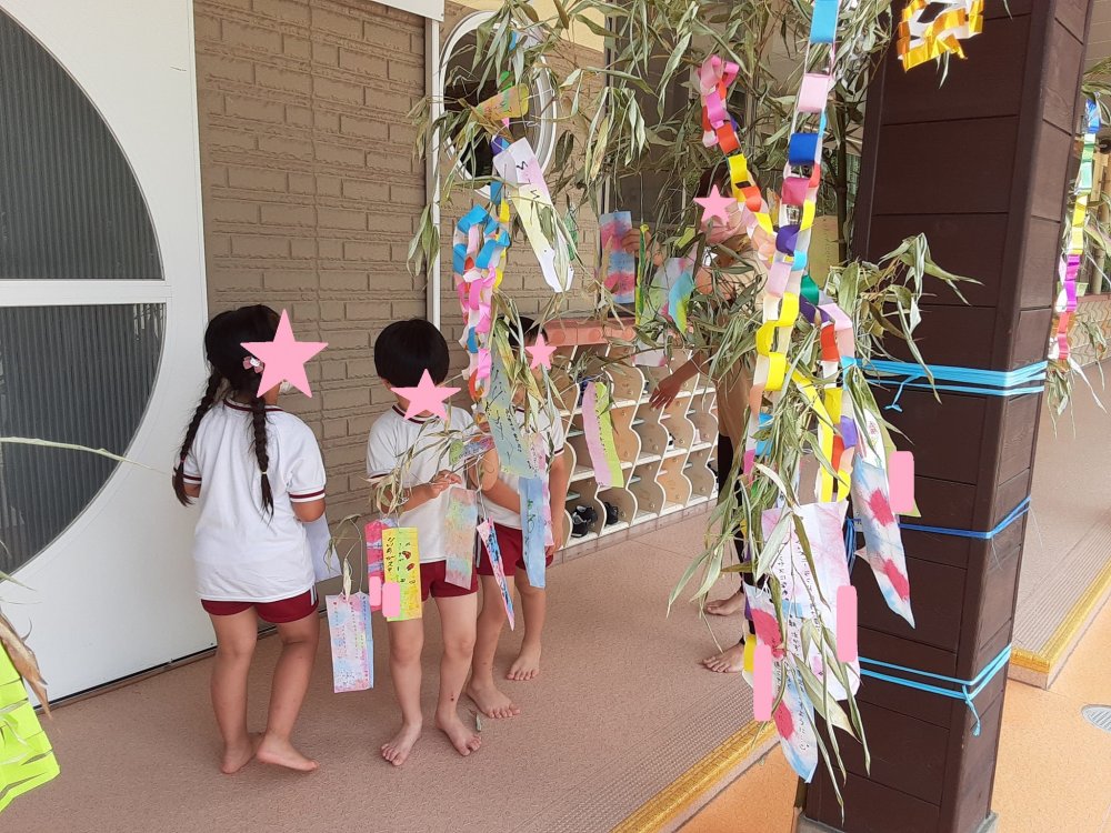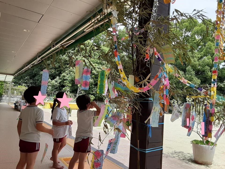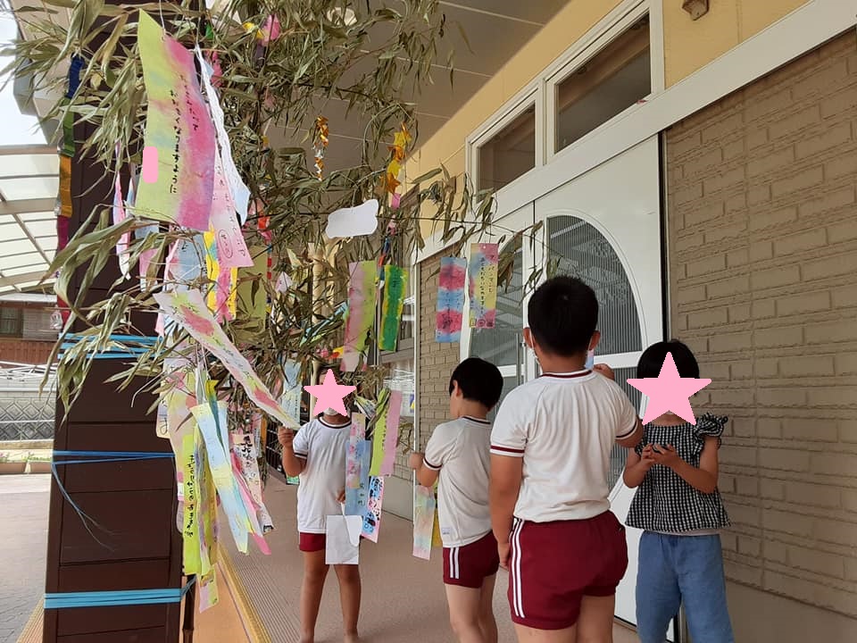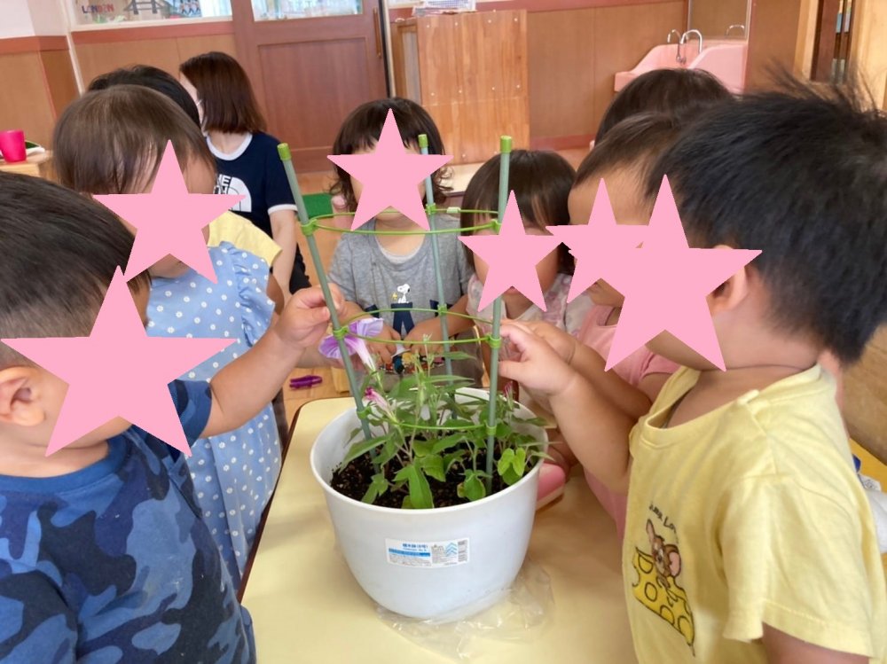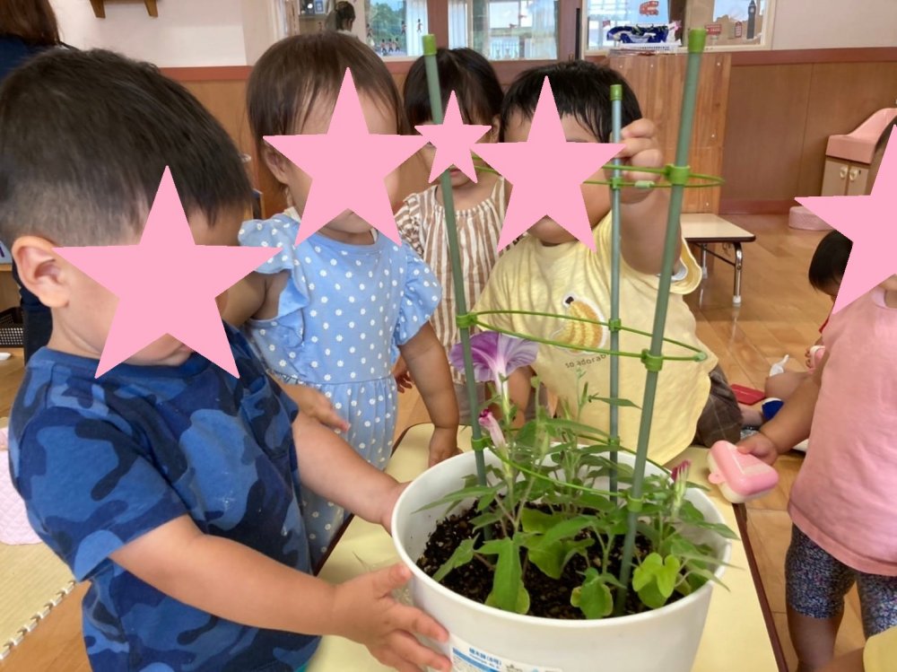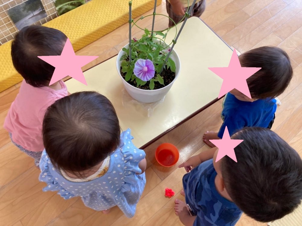 綺麗に咲いた朝顔の花を、子どもたちはじっと見つめていました ☺