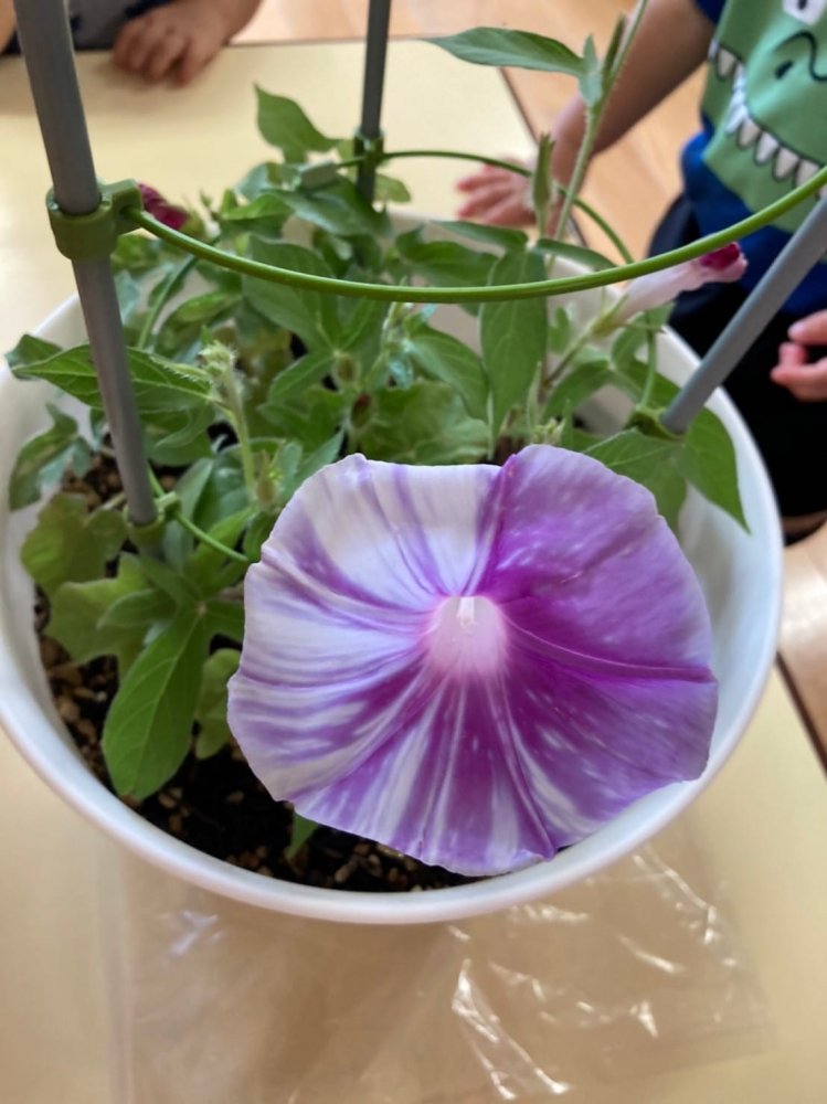 この朝顔の花は「朝のおはようの時間に咲くんだよ。」と伝えると、