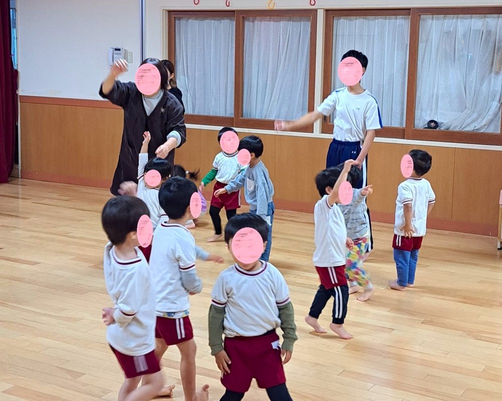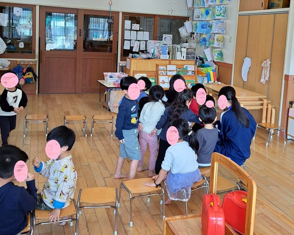 5名のお兄ちゃん、お姉ちゃんが2~5才クラスに分かれての体験学習。