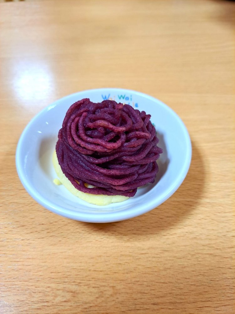 子ども達は、「紅芋タルト」を作る工程から興味深々で、「上手に作るなあ。」「早くできないかなあ。」「美味しそうだなあ。」と眺めていました。