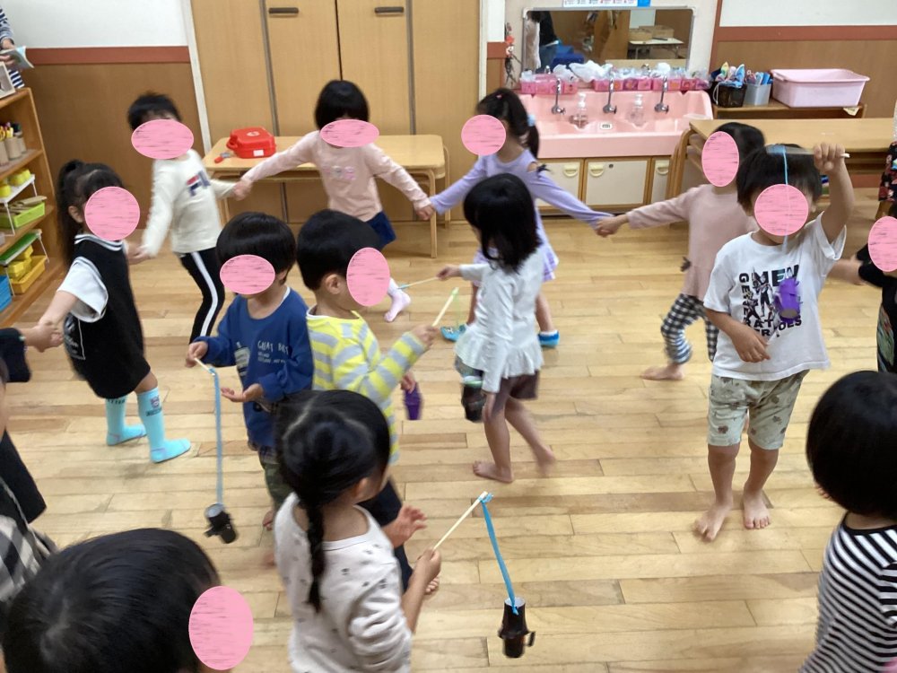 保育士の「どうぞ!」の合図が速いか遅いかでその曲のスピードが変わっていきます。
