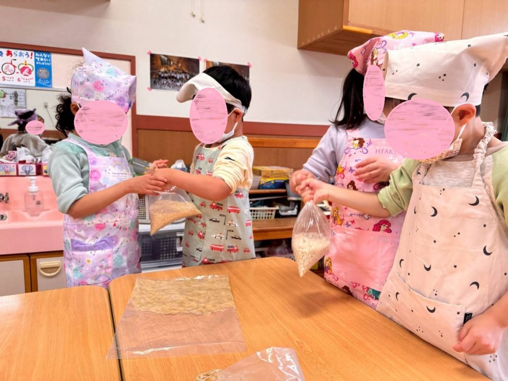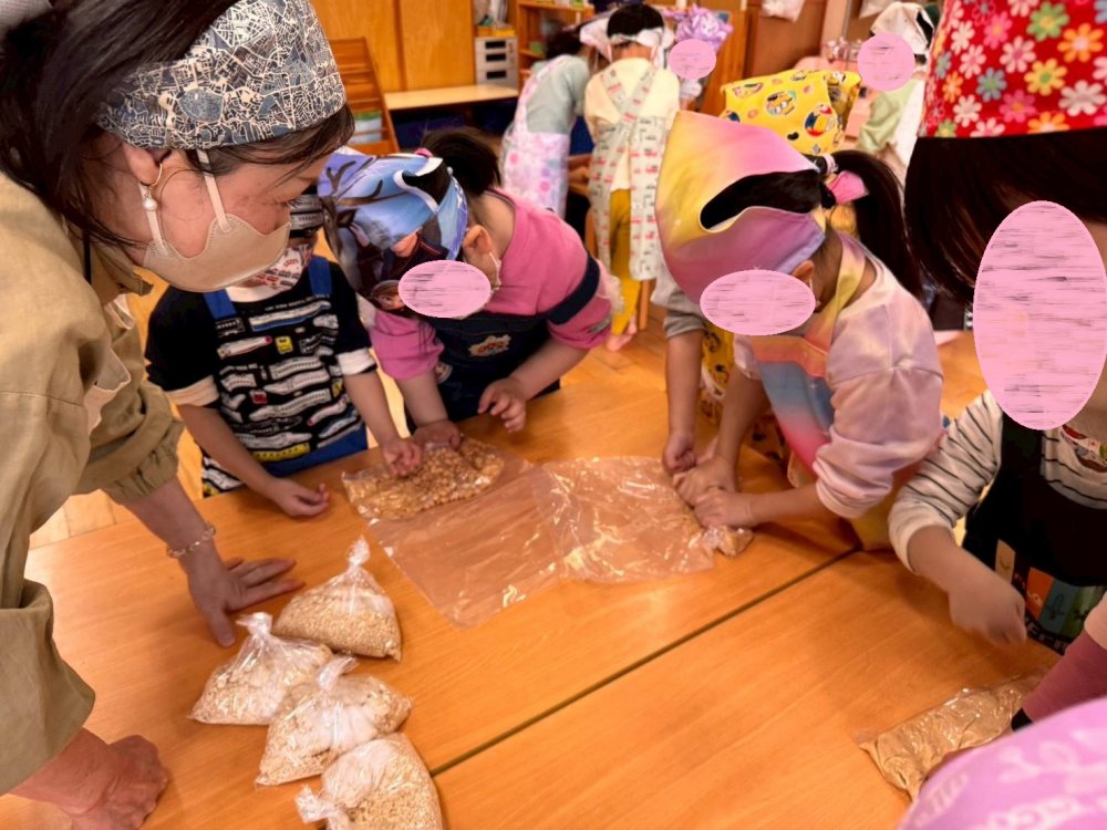 子どもたちが心待ちにしていた、4歳児クラス恒例のみそづくりです🎵
